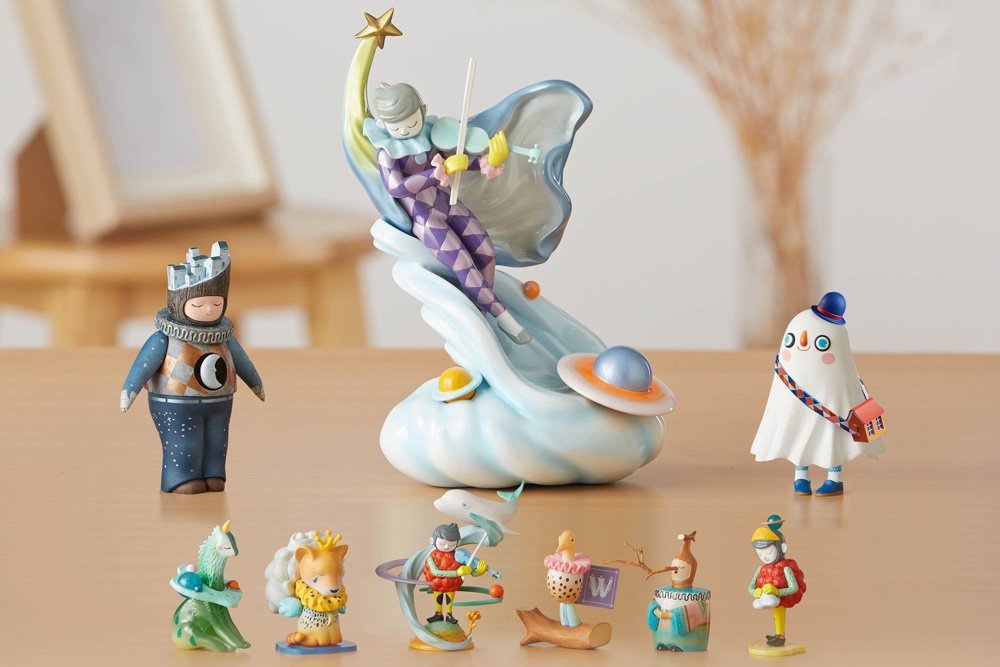 對(duì)藝術(shù)美感的追求和對(duì)人文的關(guān)懷同樣也體現(xiàn)在他的立體作品上。Steven Choi曾因“流浪者之歌”系列立體雕塑榮獲亞洲玩具頒獎(jiǎng)典禮最佳玩具設(shè)計(jì)師,身為日本手辦大廠海洋堂合作的第一位華人藝術(shù)家,與海洋堂合作的“嘆息星河”系列盲盒深受粉絲的喜愛(ài)。他所設(shè)計(jì)的立體玩具注重與玩家的深度溝通,為作品注入感性故事的同時(shí)對(duì)品質(zhì)的要求也絲毫不妥協(xié),從形象繪制到包裝的設(shè)計(jì),都藏有細(xì)膩的巧思,也因此收獲了一批死忠粉絲。